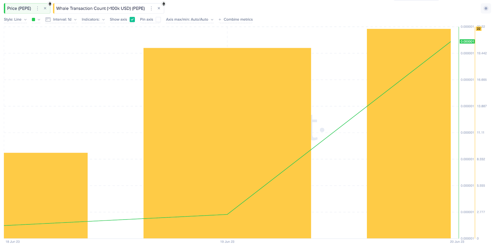 Tất cả những cột mốc tăng trưởng này chỉ diễn ra trong vòng ba ngày giao dịch. Nếu cá voi có thể duy trì mức độ hoạt động giao dịch này, PEPE có thể ghi nhận mức tăng 30% và kết thúc tháng 6 năm 2023 đầy ấn tượng.