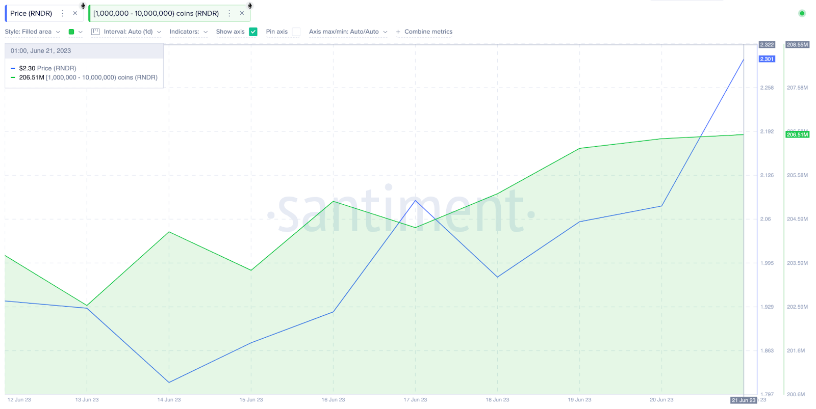 Với giá thị trường hiện tại là 2.3 USD, 3.9 triệu RNDR mới được tích lũy sẽ trị giá 8.9 triệu USD. Như đã thấy ở trên, hiện tượng tích lũy hàng loạt của cá voi đã thúc đẩy mức tăng giá 20%. Và nếu cá voi tiếp tục mua, những holder RNDR có thể mong đợi gặt hái nhiều lợi nhuận hơn ở phía trước.