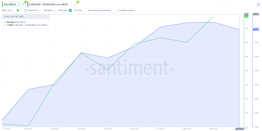 Nếu cá voi tiếp tục mua, 350 USD có thể là mục tiêu tiếp theo cho BCH vào tháng 7/2023.