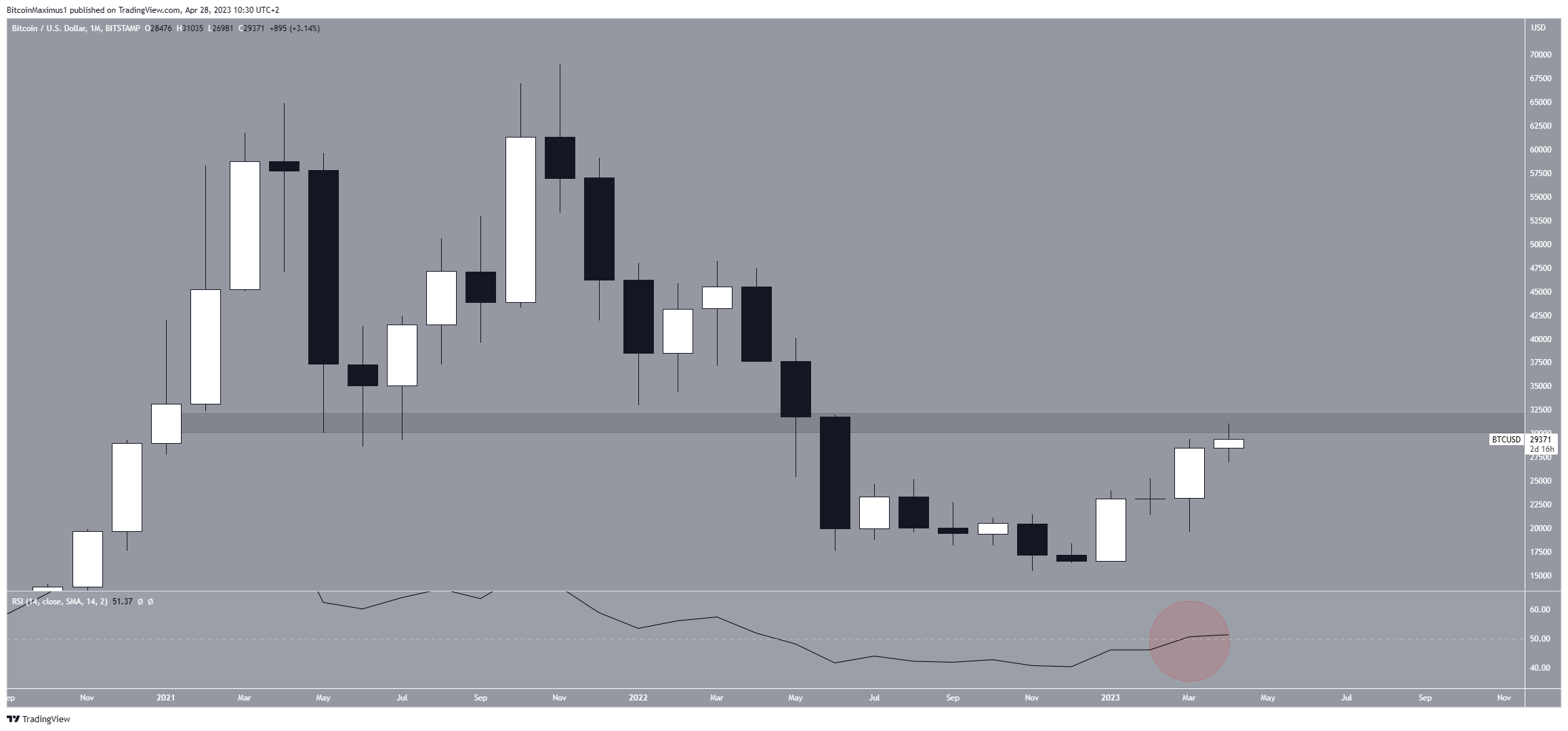 Bitcoin đã đóng 3 cây nến tháng tăng liên tiếp. Nếu giá tiếp tục đóng nến tháng 4 trên mức 28,476 USD, thì đây là sẽ cây nến xanh thứ 4 của năm 2023.
