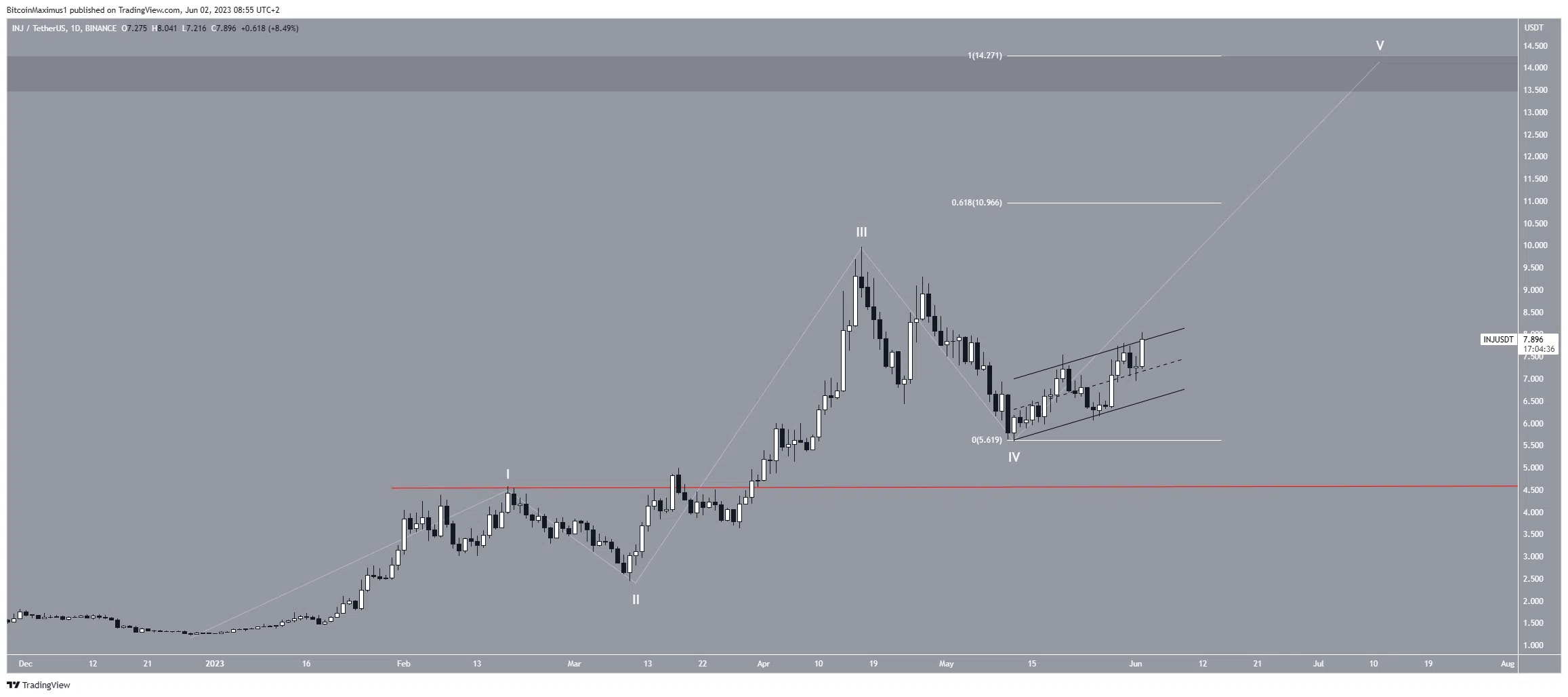 Giá INJ sẽ sớm thoát ra khỏi kênh song song tăng dần của nó nếu dữ liệu là chính xác. Sau đó, altcoin này có thể tăng lên mức kháng cự tiếp theo tại 11 USD hoặc 14.30 USD.