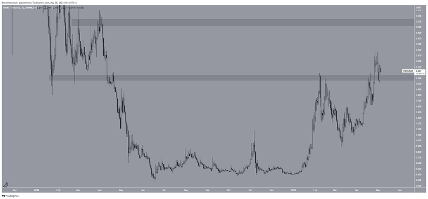 Giá RNDR đã thoát ra khỏi vùng kháng cự ngang 2.10 USD vào ngày 26/4. Sau đó, RNDR quay trở lại để xác nhận vùng kháng cự là hỗ trợ vào ngày 03/5.