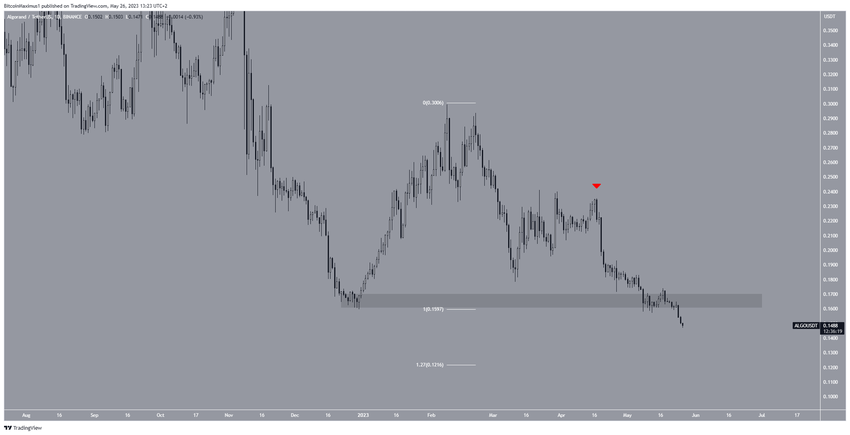 Tuy nhiên, ALGO đã phá vỡ dưới vùng hỗ trợ này vào ngày 23/5. Điều này dẫn đến mức đáy hàng năm mới là 0.147 USD vào ba ngày sau đó.