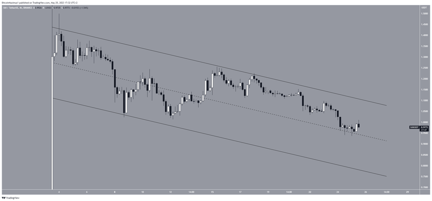 Giá SUI đã giảm bên trong một kênh song song giảm dần kể từ ngày 04/5. Hiện tại, SUI đang giao dịch ngay trên đường giữa của kênh.