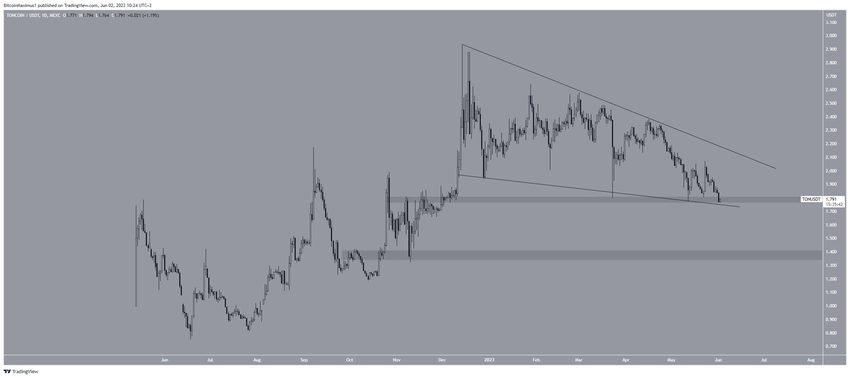 Giá TON đã giảm theo hình tam giác giảm dần kể từ tháng 12/2022. Hình tam giác giảm dần được coi là một mô hình tăng giá, có nghĩa là nó thường dẫn đến các đột phá.