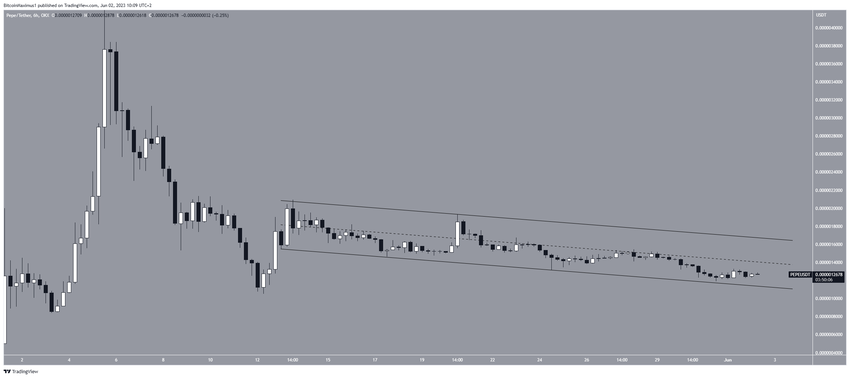 Memecoin PEPE đã giảm dần sau cơn sốt vào đầu tháng trước. Giá PEPE đã giảm bên trong một kênh song song giảm dần kể từ ngày 13/5. Kênh này được coi là một mô hình điều chỉnh, nghĩa là hầu hết thời gian nó dẫn đến các điểm phá vỡ. Vào ngày 31/5, PEPE đã bật lên tại đường hỗ trợ của kênh và dường như đã bắt đầu chuyển động đi lên.