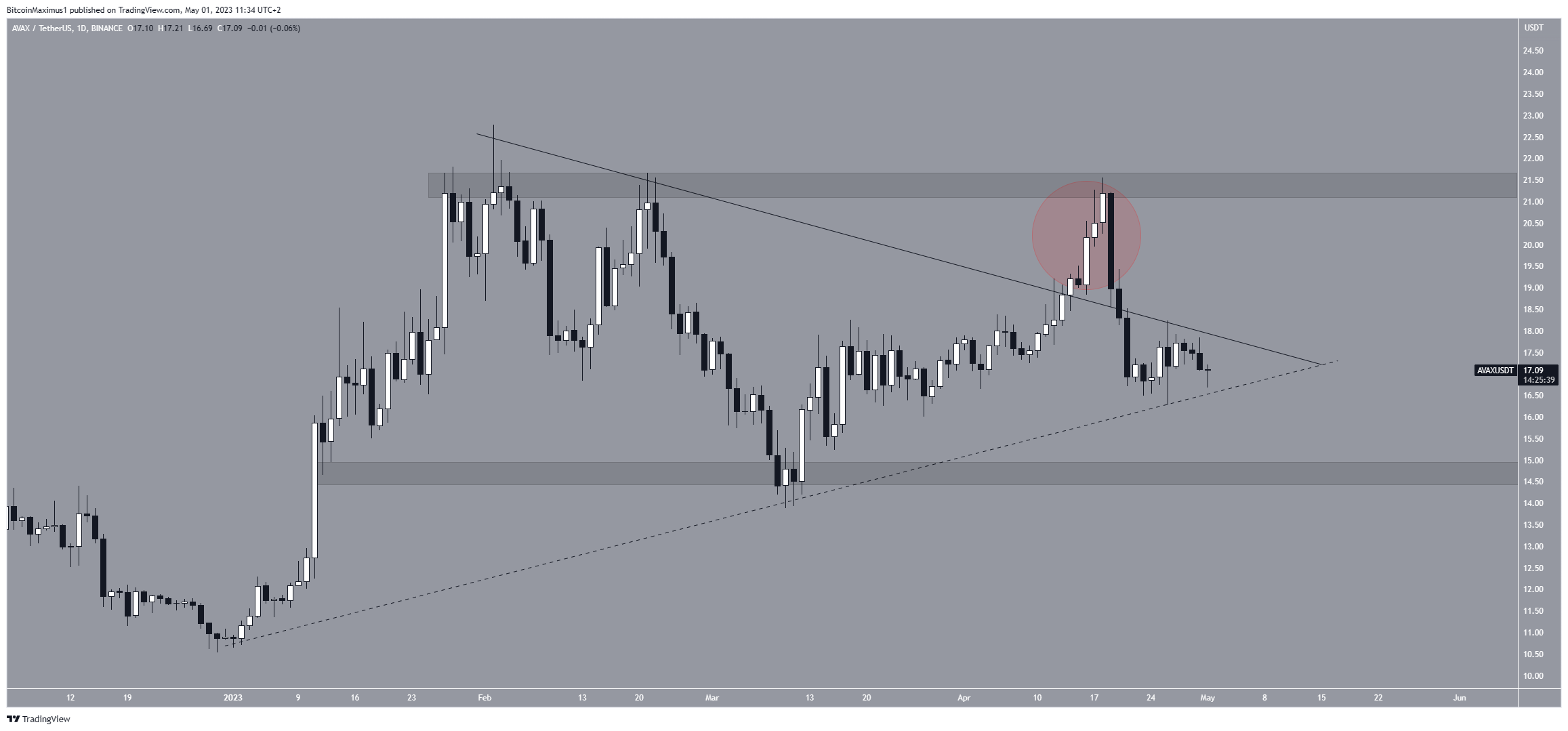 Nếu đột phá thành công, AVAX có thể di chuyển đến vùng kháng cự 21.50 USD. Còn nếu ngược lại, việc giá giảm xuống còn 15 USD là điều có thể xảy ra.