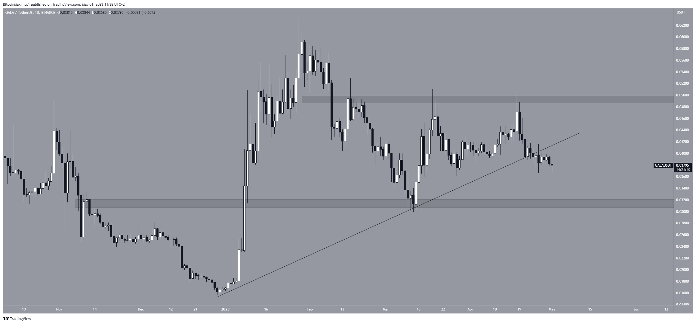 Nếu sự sụt giảm tiếp tục, khu vực hỗ trợ gần nhất sẽ là 0.031 USD. Mặt khác, nếu giá GALA lấy lại đường hỗ trợ, nó có thể tăng lên mức kháng cự tiếp theo là 0.049 USD.