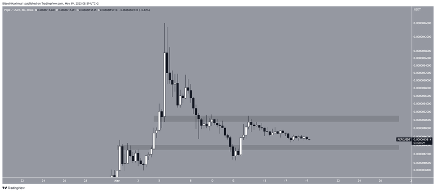 Giá PEPE đã giảm kể từ khi đạt mức cao 0.0000019 USD vào ngày 05/5. Mức giảm dẫn đến mức đáy 0.0000010 USD vào ngày 12/5. Đà giảm giá chững lại sau khi PEPE phá xuống dưới khu vực hỗ trợ 0.0000013 USD.