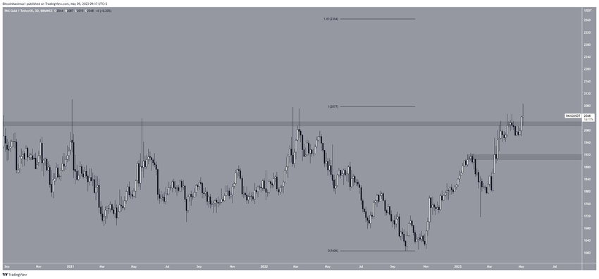 Khép lại danh sách các altcoin tăng giá trong tuần này là PAXG, giá PAXG đang tiến gần đến mức ATH mới sau khi vượt qua vùng kháng cự 2,020 USD. Hiện tại, giá PAXG đang trong quá trình xác nhận vùng hỗ trợ.