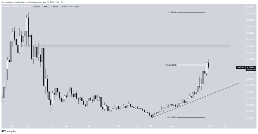 Vào ngày 22 tháng 8, FTM đã thành công trong việc chạm đỉnh tại 0.598 USD. Tuy nhiên, altcoin này dường như đã bị từ chối bởi mức Fibo kháng cự thoái lui 0.5. Nó đã không thể đạt được mức đóng cửa trên mức đó.