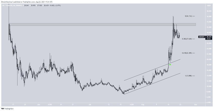 AR đã tăng lên bên trong một kênh song song tăng dần kể từ ngày 20 tháng 7. Đến ngày 15 tháng 8, altcoin này đã thành công trong việc bứt phá ra khỏi kênh trên. Ba ngày sau khi xác nhận kênh là hỗ trợ (biểu tượng màu xanh lá cây), AR bắt đầu tăng tốc.