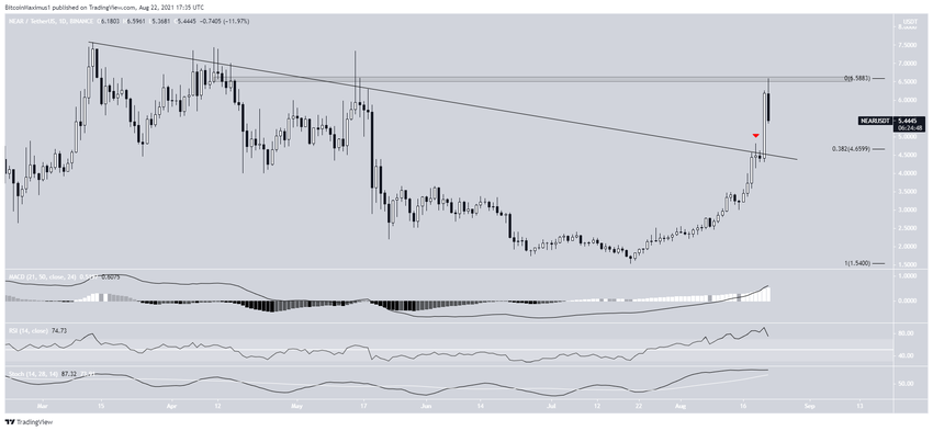 Hai ngày sau, NEAR đã thành công bứt phá ra khỏi đường kháng cự trên. Đến ngày 22 tháng 8, NEAR tiếp tục vươn lên, chạm mức đỉnh tại 6.59 USD.