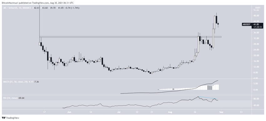 Giá AR tăng lên kể từ ngày 20 tháng 7. Altcoin này đã bứt phá trong xu hướng tăng vào ngày 15 tháng 8 và tiếp tục tăng. Đến ngày 18 tháng 8, giá trị của AR đạt mức 36.16 USD.