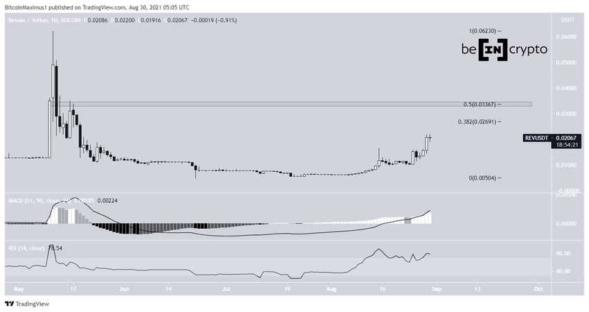 Kể từ ngày 20 tháng 7, từ mức đáy trong khu vực 0.005 USD, giá của REV đã tăng đáng kể. Tính đến ngày 30 tháng 8, altcoin này đạt đỉnh tại mức 0.023 USD.
