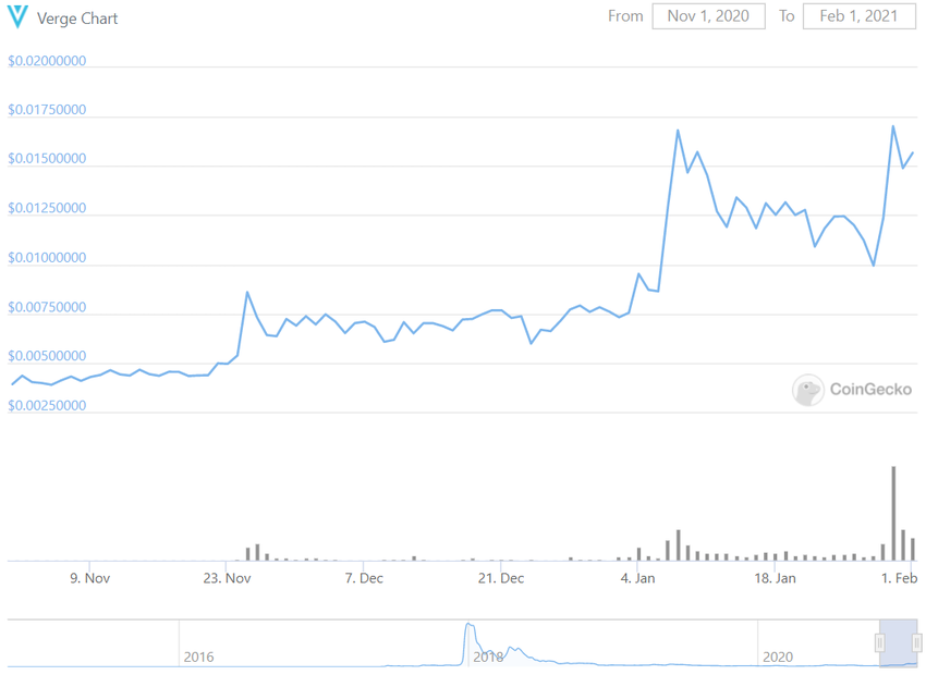 Tuy nhiên, halving (giảm một nửa) của XVG đã diễn ra vào ngày 26 tháng 1. Khả năng cao giá sẽ tăng đáng kể sau đó. Sự kiện này tương tự như những gì đã xảy ra với BTC sau khi giảm một nửa lần thứ ba vào ngày 11 tháng 5 năm 2020.