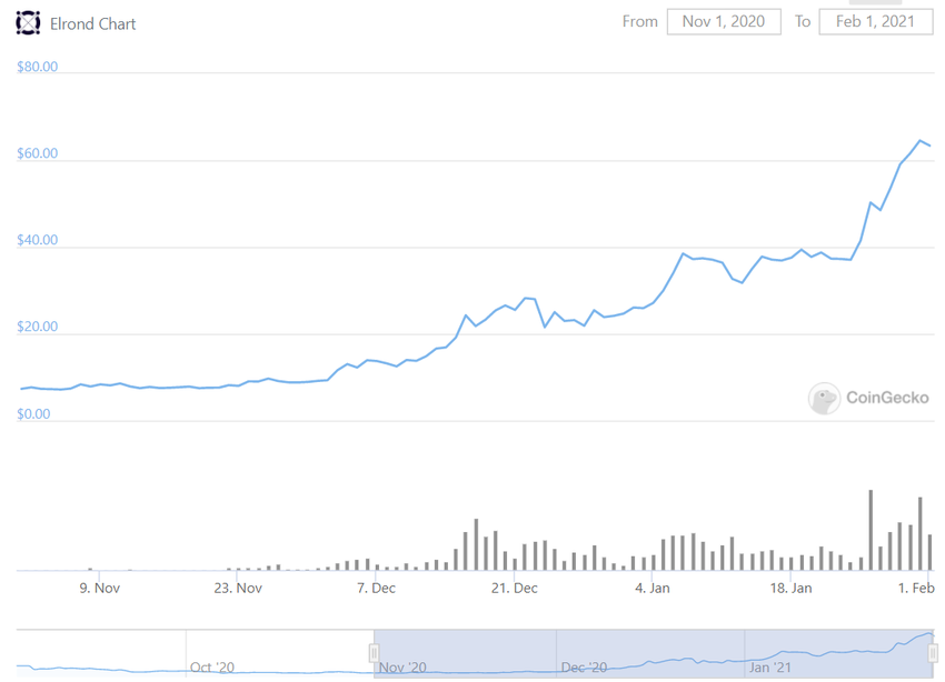 Nếu xếp theo vốn hóa thị trường, EGLD vẫn là một đồng tiền tương đối nhỏ. Tuy nhiên trong tháng qua, giá và thứ hạng của dòng tiền này đã tăng trưởng đáng kể.