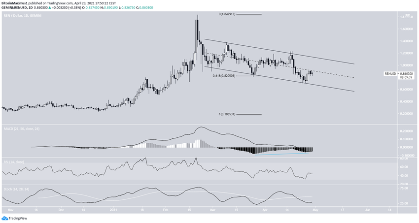 SponsoredREN đang cố gắng lấy lại mức thoái lui 0.618 Fib ở mức 0.82 USD.