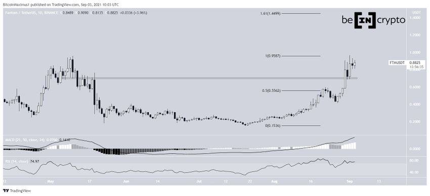 Tiếp đến vào ngày 1 tháng 9, nhờ sự tăng trưởng đó, altcoin này đã chạm được mức ATH tại 0.967 USD. Sự bứt phá đã không tiếp tục diễn ra, nhưng chỉ báo MACD và RSI vẫn đang đảo chiều theo hướng tăng.