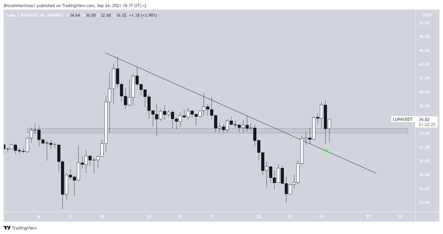 Sự phục hồi sau đó đã tạo ra sự bứt phá khỏi đường kháng cự giảm dần và xác nhận nó là đường hỗ trợ sau đó. LUNA cũng đã lấy lại vùng hỗ trợ 34.50 USD.