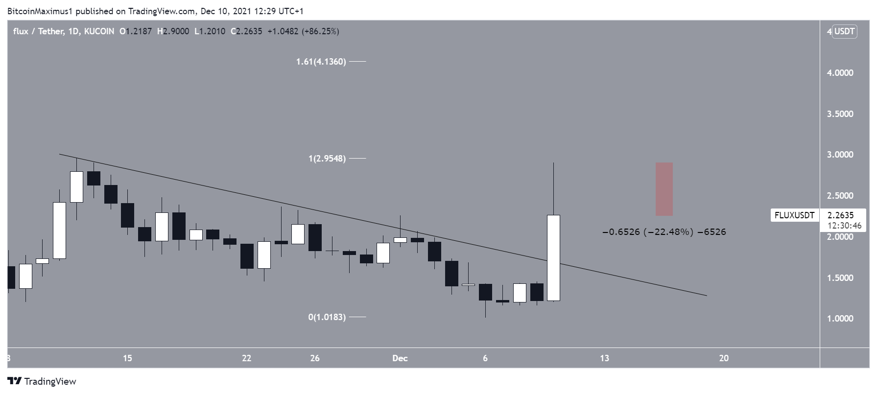 Có vẻ như FLUX đã rõ ràng thoát ra khỏi đường kháng cự giảm dần đã có kể từ mức đỉnh lịch sử từ ngày 12 tháng 11. Do đó, có khả năng đợt điều chỉnh đã hoàn tất.