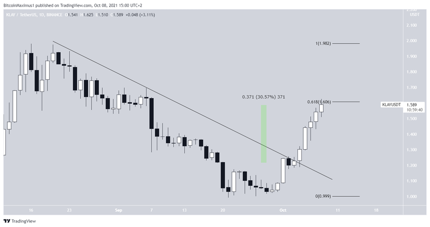 Một khi KLAY di chuyển vượt lên trên mức đó, tiền điện tử có thể hướng đến mức giá ATH là 1.98 USD.