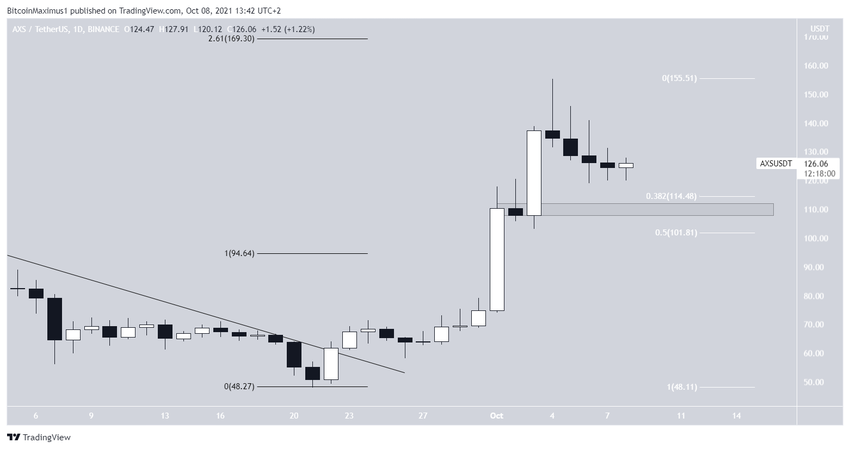 Cho đến nay, mã thông báo đã đạt mức giá ATH là 155 USD vào ngày 4 tháng 10. Tuy nhiên, cùng ngày, altcoin này đã tạo ra một mô hình nến sao băng. Đây là một thanh nến giảm giá với bấc phía trên rất dài. Điều này cho thấy rằng người bán hiện đang nắm quyền kiểm soát. Không có gì ngạc nhiên khi AXS đã giảm kể từ đó.