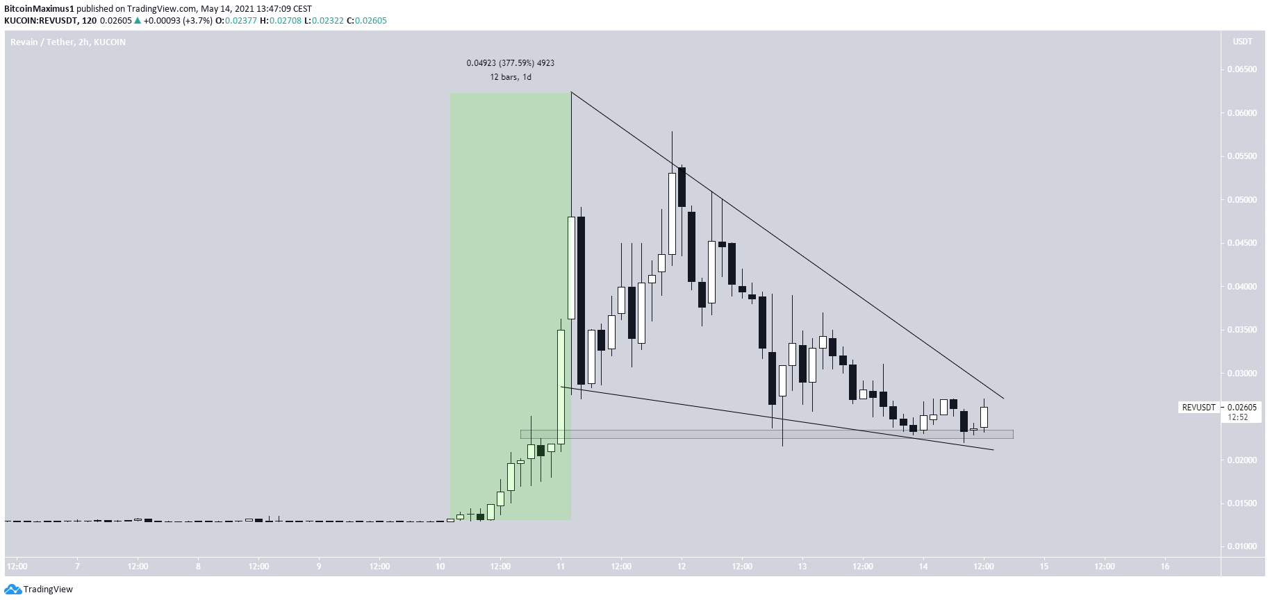 Tương tự như SHIB, REV đã có mức tăng đáng kể bắt đầu từ ngày 10 tháng 5. Chỉ trong vòng 1 ngày, REV đã tăng 377%, đạt mức giá cao nhất mọi thời đại mới là $0.062.