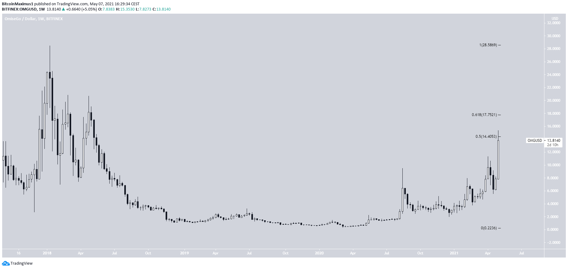 OMG đã tăng đáng kể trong tuần này. Giá của nó đã đạt mức cao nhất tính từ đầu năm 2021 là $15.35. Tuy nhiên, không giống như ETC, OMG vẫn chưa thể lập đỉnh giá mới.