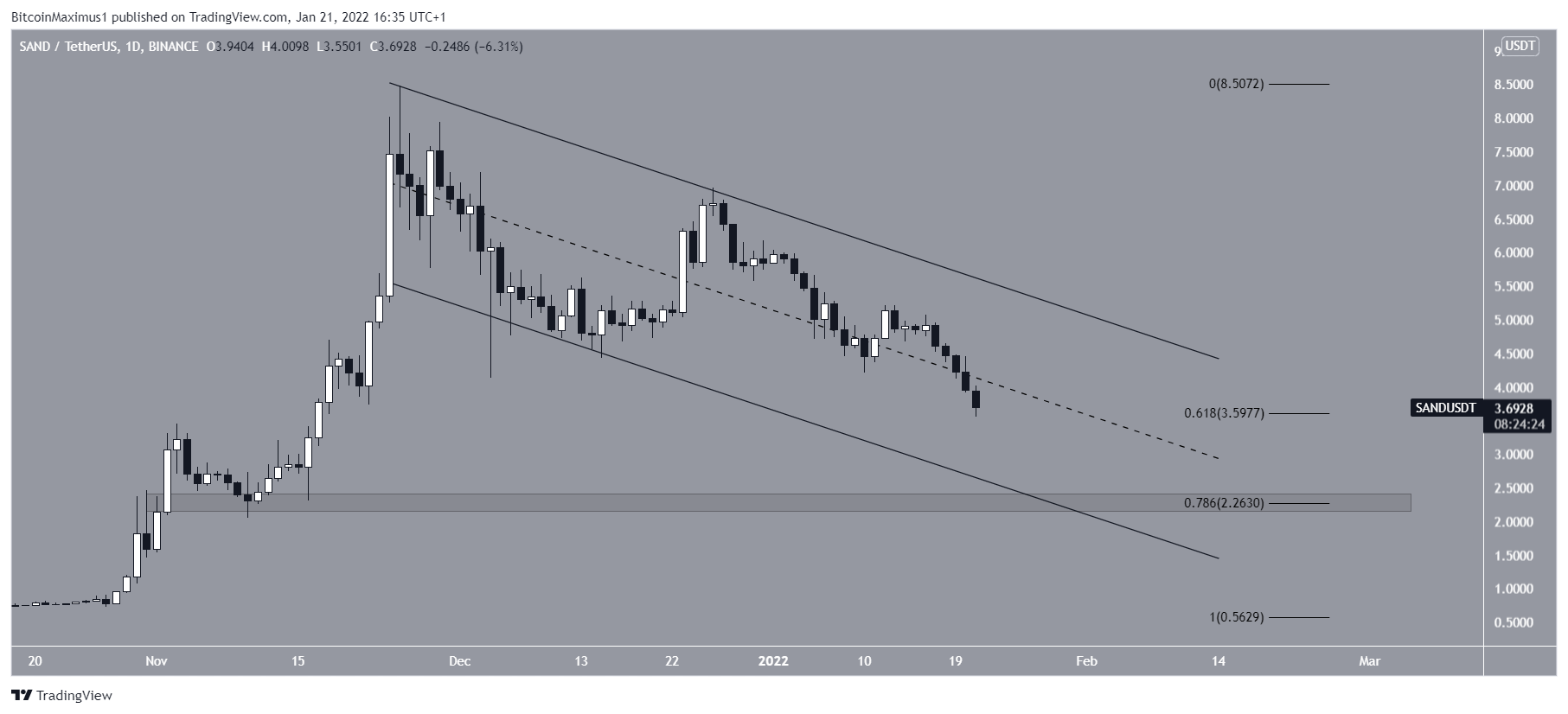 Tương tự như LRC, giá SAND đã giảm kể từ mức đỉnh lịch sử vào ngày 25 tháng 11. Đà giảm có dạng một kênh giá song song giảm dần.