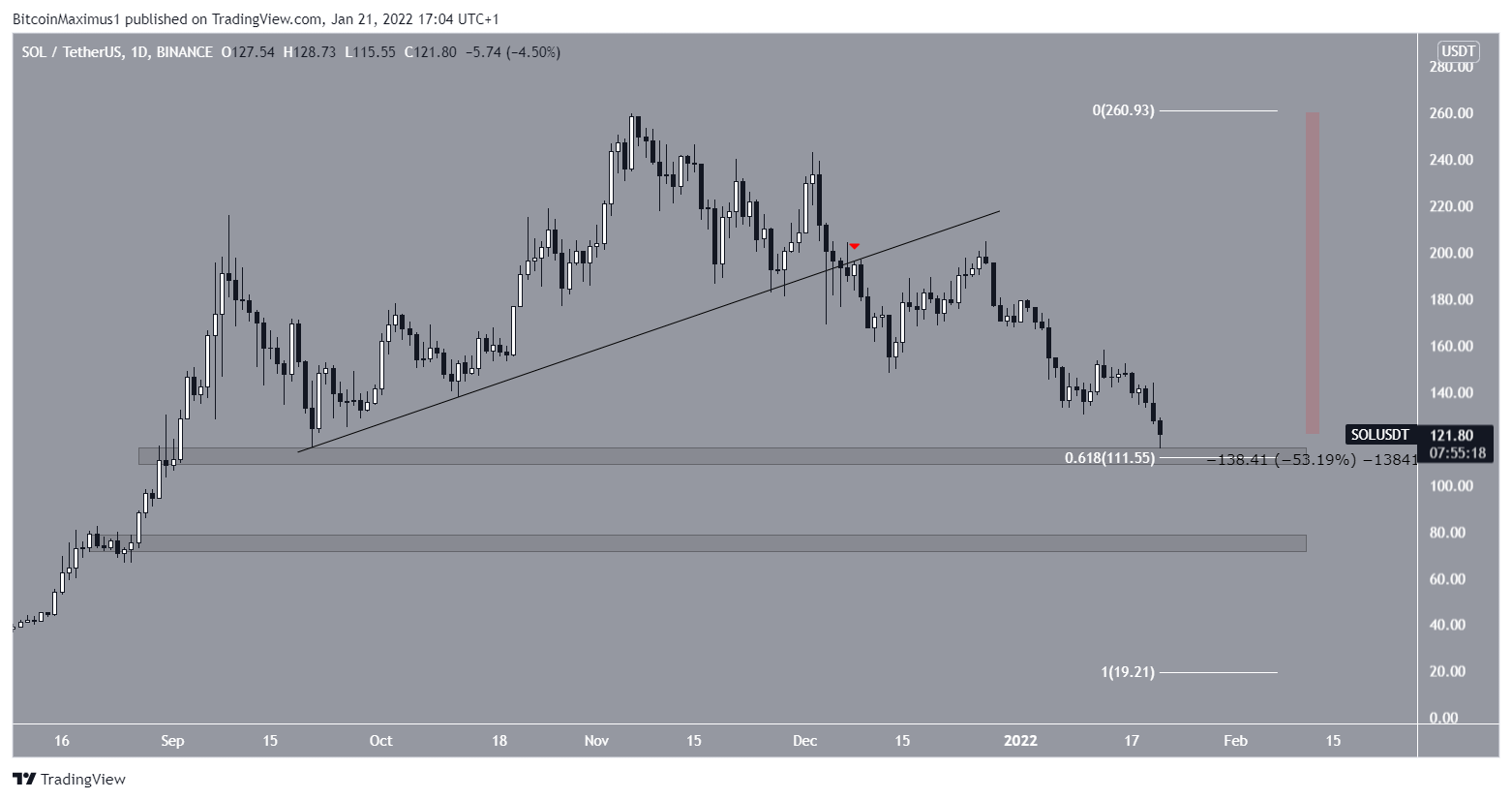 Hiện tại, SOL đang giao dịch ngay trên mức hỗ trợ 0.618 Fib thoái lui tại mức 111 USD. Vì không có hỗ trợ nào bên dưới khu vực này cho đến 74 USD, điều quan trọng là SOL phải quản lý để duy trì giao dịch trên mức hỗ trợ hiện tại.