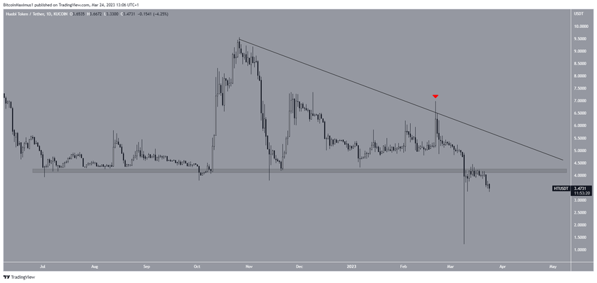 #3. Giá Huobi token (HT) bị từ chối bởi kháng cự giảm dần