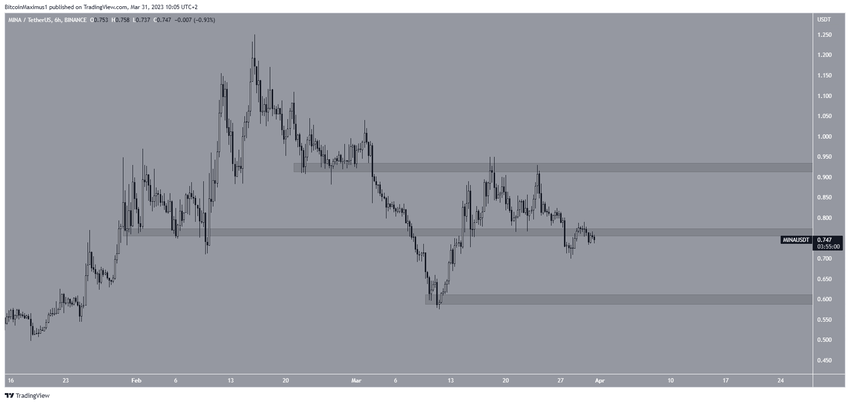 Giá MINA đã giảm kể từ ngày 18/3. Altcoin này tạo ra mức đỉnh thấp hơn vào ngày 24/3 và tăng tốc độ giảm sau đó. Vào ngày 28/3, giá MINA đã xác nhận vùng 0.75 USD là mức kháng cự. Nếu xu hướng giảm vẫn tiếp tục, giá MINA có thể giảm xuống còn 0.6 USD. Ngược lại, nếu giá MINA lấy lại khu vực 0.75 USD, altcoin này có thể tăng lên 0.90 USD.