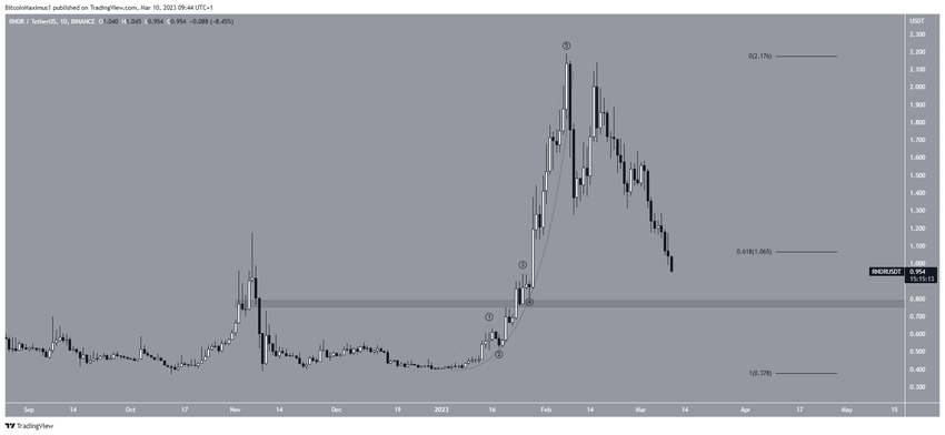 Hiện tại, Altcoin này giao dịch dưới mức hỗ trợ thoái lui Fibo 0.618 ở mức 1.08 USD. Nếu sự sụt giảm tiếp tục, hỗ trợ gần nhất sẽ là 0.77 USD. Mặt khác, nếu RNDR lấy lại động lượng, nó có thể kiểm tra lại khu vực 1.07 USD một lần nữa.