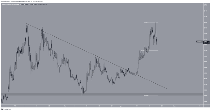 Nếu mức giảm tiếp tục, altcoin này có thể giảm xuống mức hỗ trợ gần nhất là 1.70 USD. Mặt khác, nếu đà tăng trở lại, RNDR có thể tăng lên mức đỉnh trước đó là 2.19 USD.
