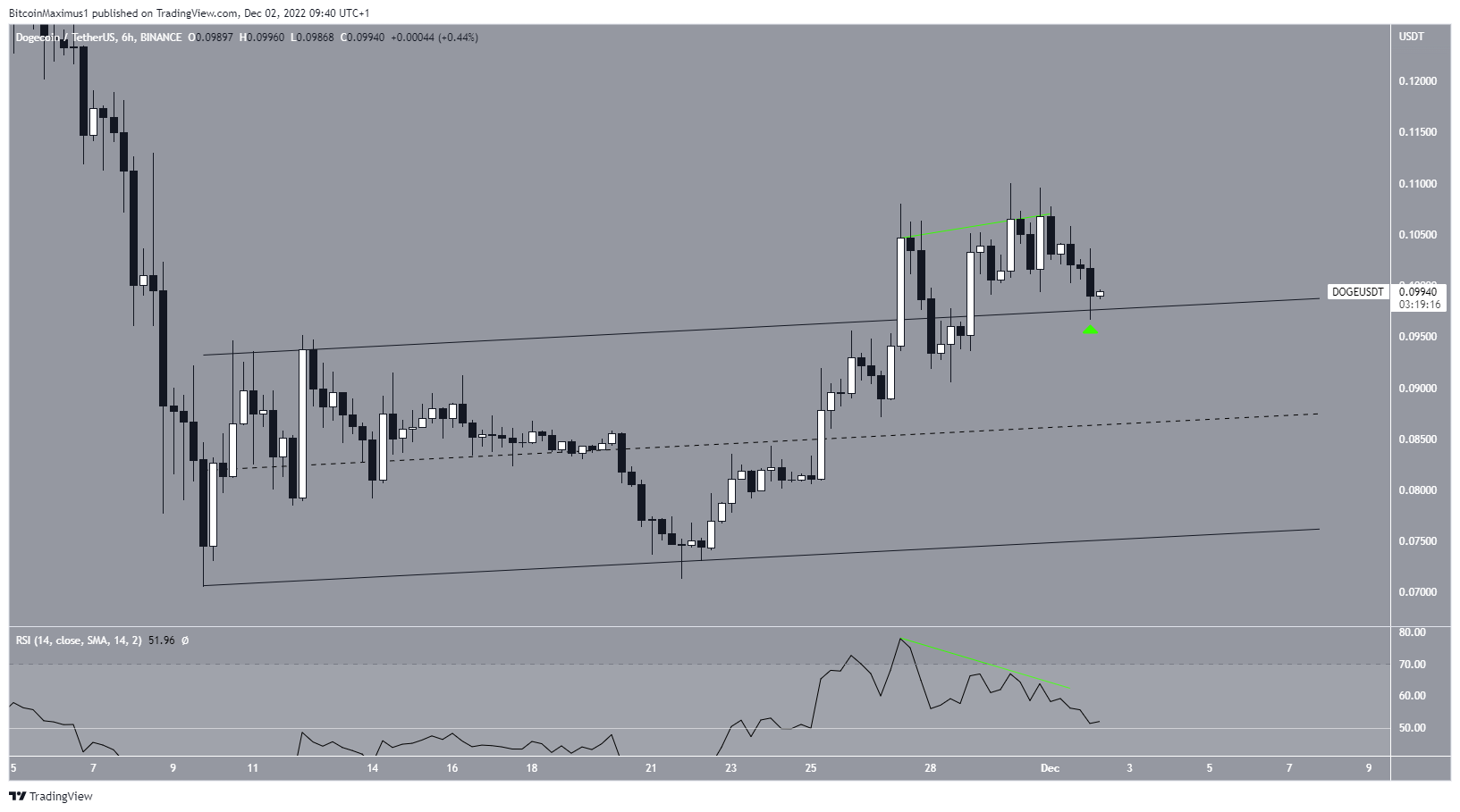 Vị trí thứ 4 trong danh sách các Altcoin tăng mạnh nhất tuần thuộc về Dogecoin. Giá DOGE đã thoát ra khỏi một kênh song song tăng dần vào ngày 29/11 và quay trở lại để xác nhận nó là hỗ trợ vào ngày 02/12 (biểu tượng màu xanh lá cây). Thông qua chỉ báo RSI, sự phân kỳ giảm giá đã xuất hiện nhưng chỉ số vẫn hoạt động quanh mức 50 (đường màu xanh lá cây).