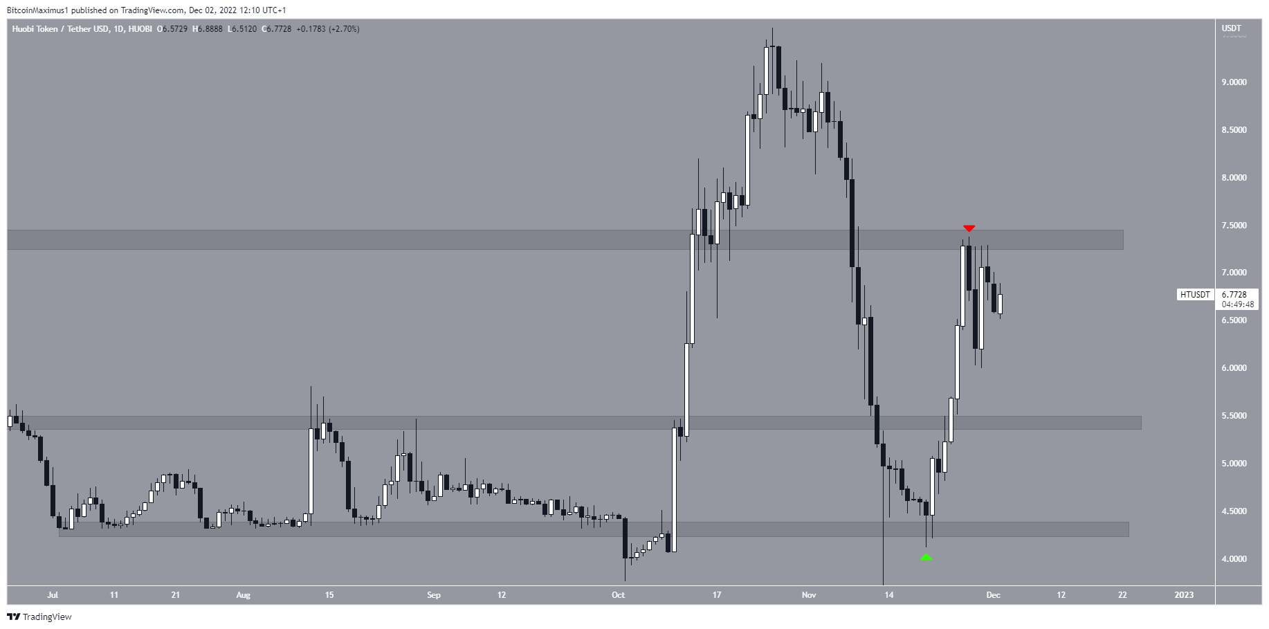 Cuối cùng, đồng Altcoin tăng mạnh nhất trong danh sách này là Huobi token. HT đã tăng kể từ khi nó bật lên tại vùng hỗ trợ nằm ngang 4.3 USD vào ngày 20/11. Chuyển động đi lên diễn ra nhanh chóng và dẫn đến mức cao 7.38 USD trong 7 ngày sau đó. Sau đó, giá HT đã bị khuất từ bởi vùng kháng cự 7.4 USD.