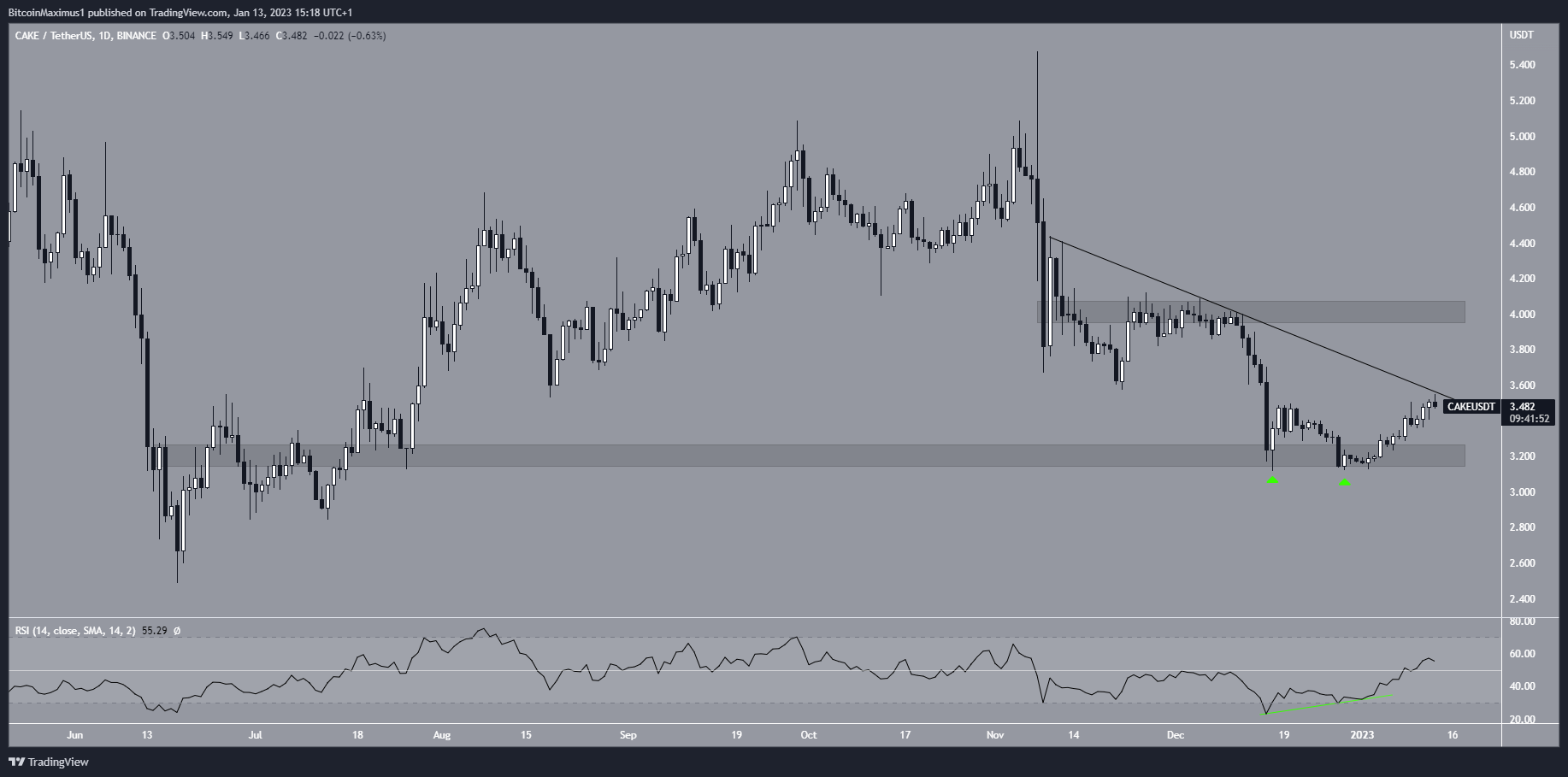 Nếu giá CAKE thành công phá vỡ kháng cự, nó có thể tăng lên mức 4 USD. Nếu bị từ chối, nó có thể sụt giảm và kiểm tra lại khu vực 3.2 USD.