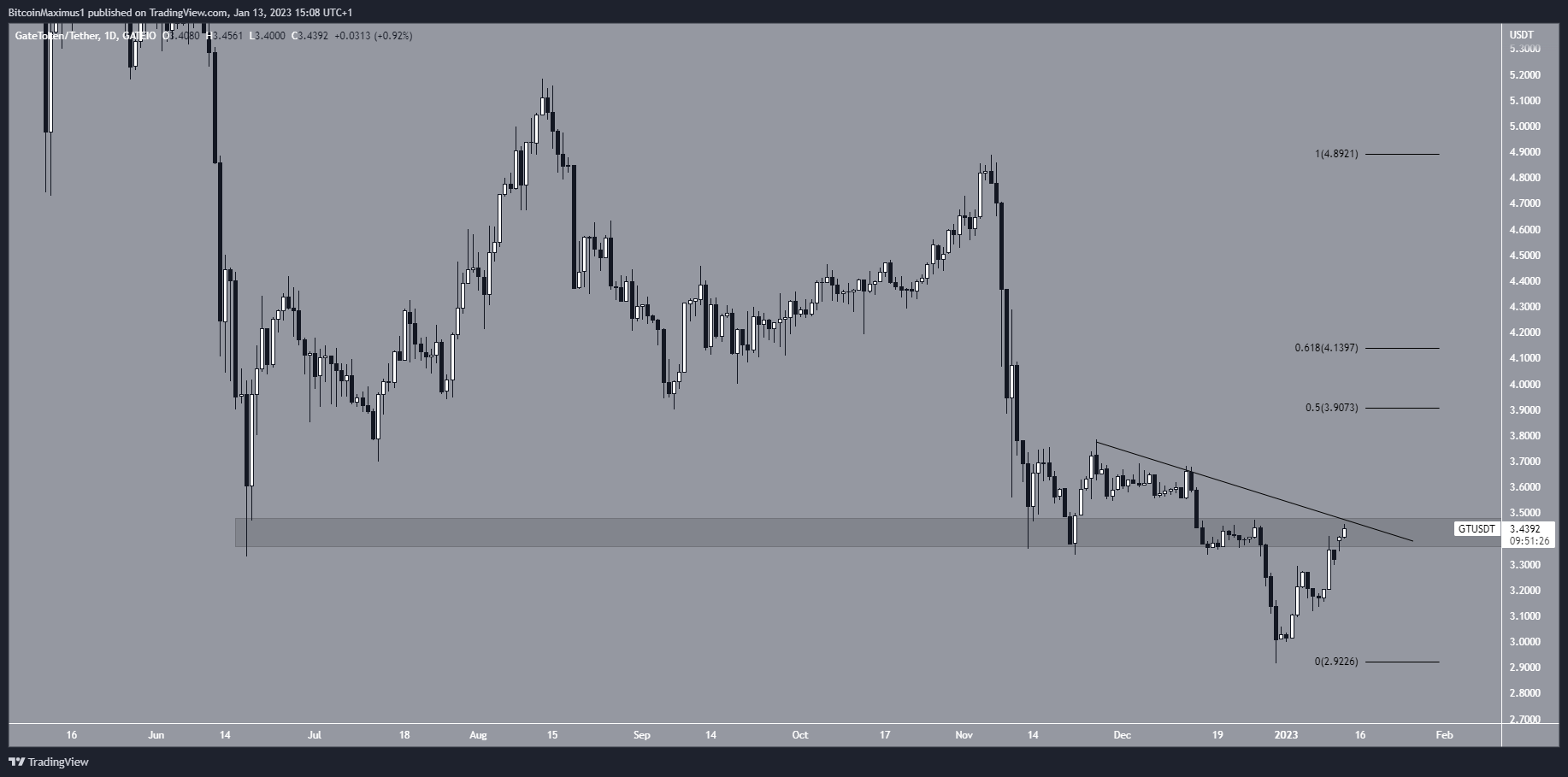 Giá GT đã phá vỡ vùng hỗ trợ ngang 3.45 USD vào ngày 27/12, giảm xuống mức thấp nhất là 2.91 USD ba ngày sau đó. Vì khu vực 3.45 USD đã hình thành từ tháng 6 nên người ta cho rằng sự cố này có thể xúc tác cho một đợt giảm giá mạnh. Tuy nhiên, giá đã tăng trở lại ngay sau đó và hiện đang trong quá trình lấy lại mức 3.45 USD. Hiện tại, khu vực 3.45 USD cũng trùng với đường kháng cự giảm dần, càng làm tăng tầm quan trọng của nó.