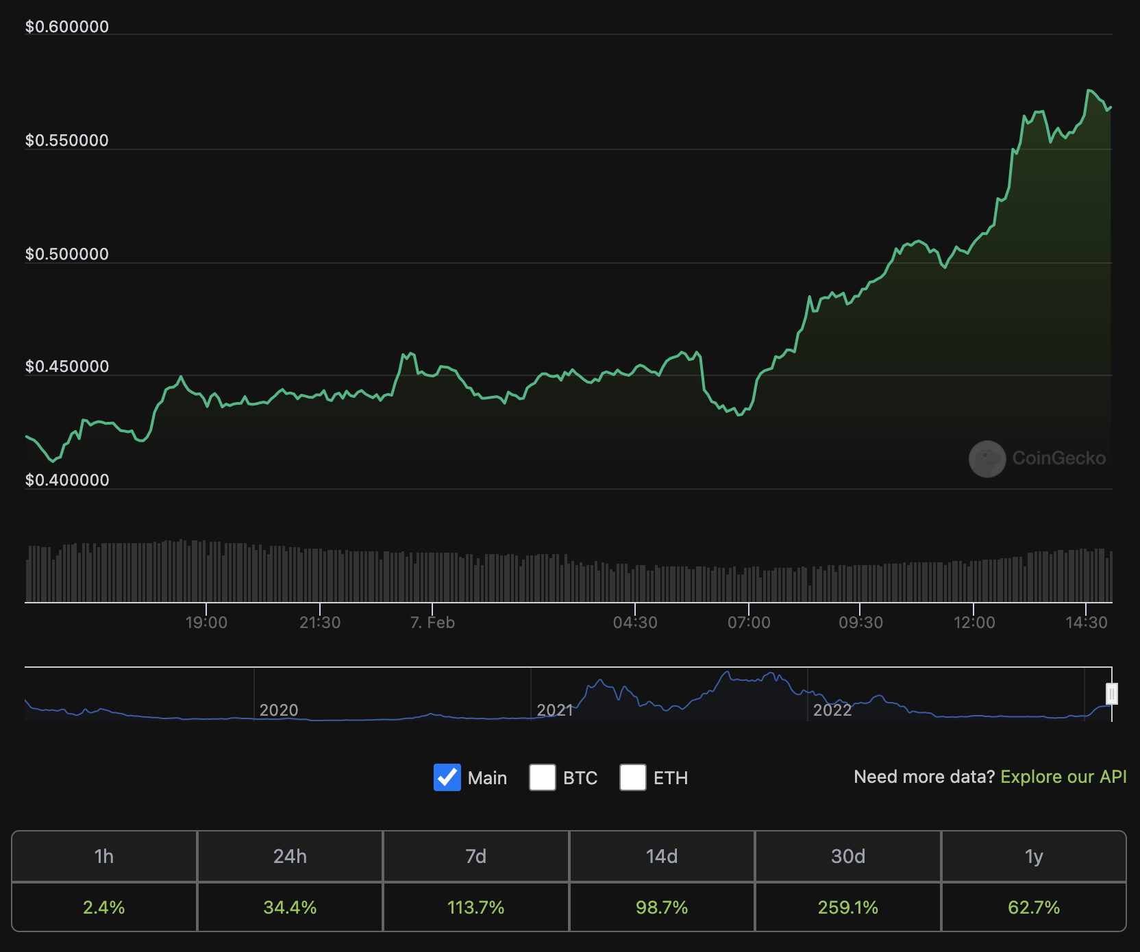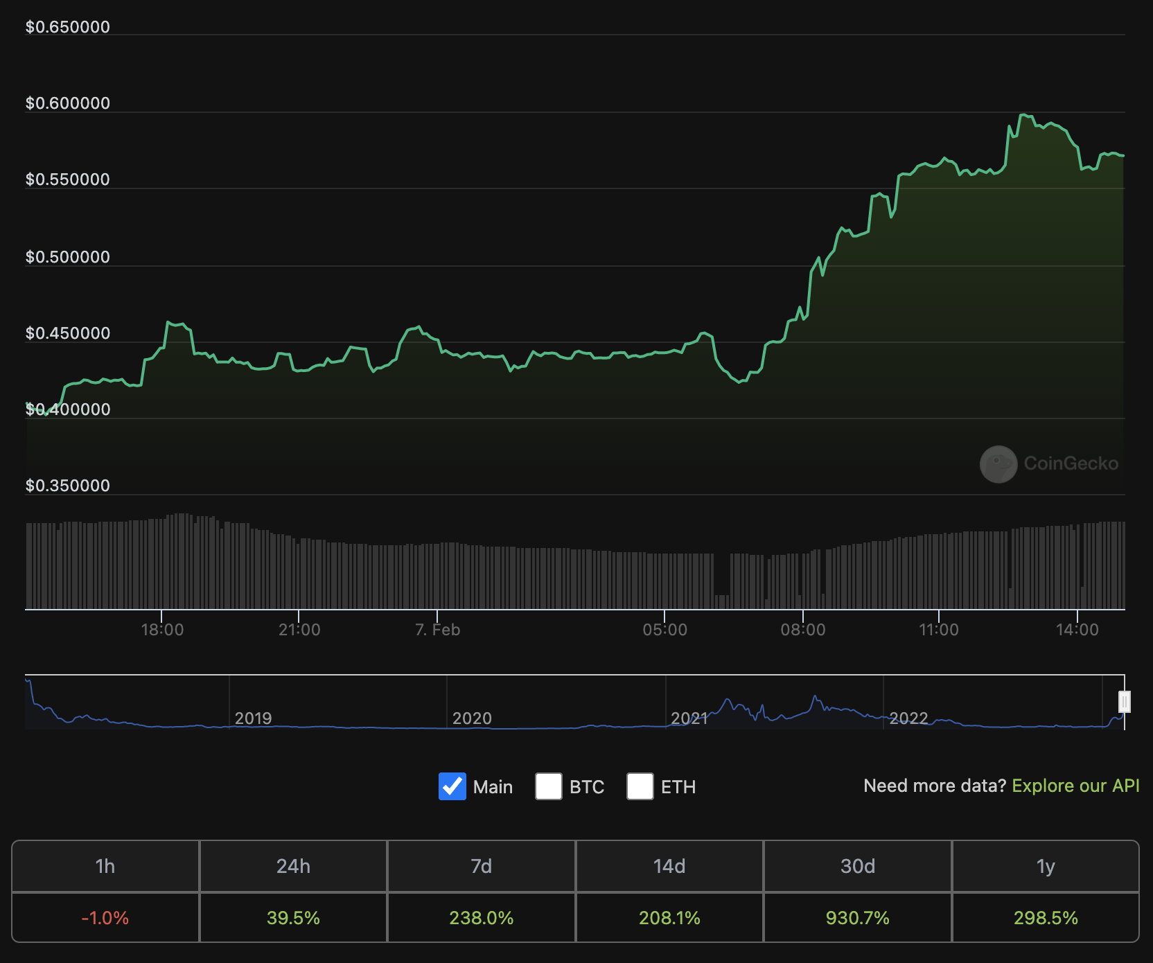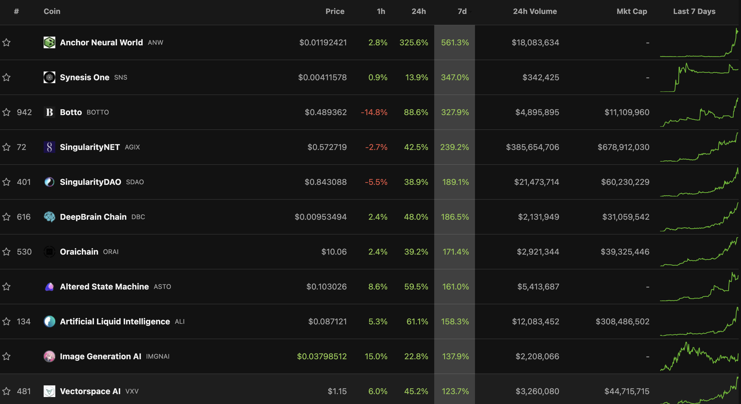 Một đồng coin khác cũng cho thấy mức tăng giá mạnh trong trend AI Crypto này là SigularityNET (AGIX). Theo đó, giá AGIX cũng đã tăng 39.5% trong 24 giờ qua. Trong khung thời gian tuần, giá AGIX cũng đã tăng 238%. Vốn hoá của dự án này hiện ở mức 687 triệu USD và khối lượng giao dịch 24 giờ gần nhất là 383 triệu USD.