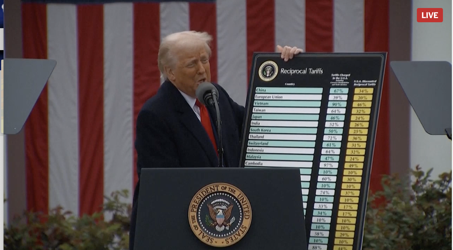 Ngày Giải Phóng của Tổng thống Trump, khi ông công bố một loạt thuế quan của Mỹ, đã đến và các thị trường đang chờ đợi một cách kỳ vọng. Trong một buổi phát sóng trực tiếp, Trump đã chi tiết các thuế quan sẽ áp dụng cho các quốc gia trên thế giới. Ngoài thuế quan cố định đối với ô tô, ông cũng mô tả cách tính toán thuế quan cho từng quốc gia: