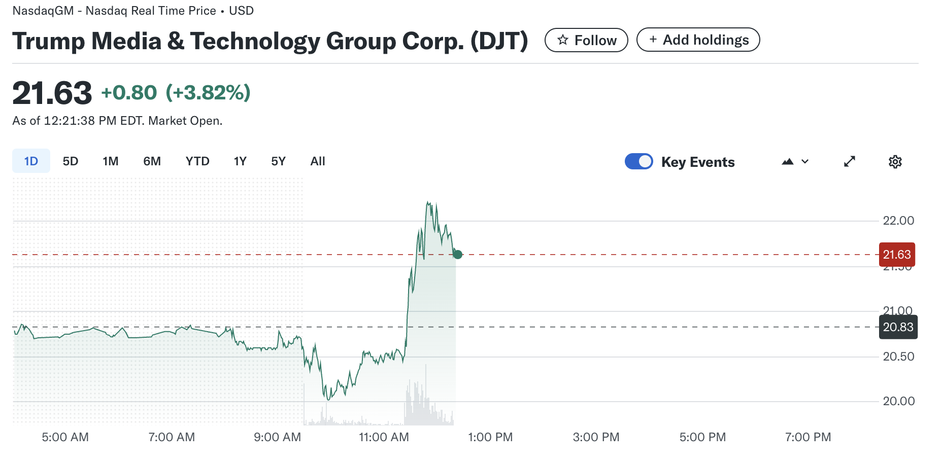 Kể từ khi Trump Media công bố thông tin về Bitcoin, giá cổ phiếu của họ đã tăng khoảng 4%. Bitcoin đã hoạt động tốt gần đây, thể hiện sự tăng trưởng ổn định giảm sự biến động trong 90 ngày qua.