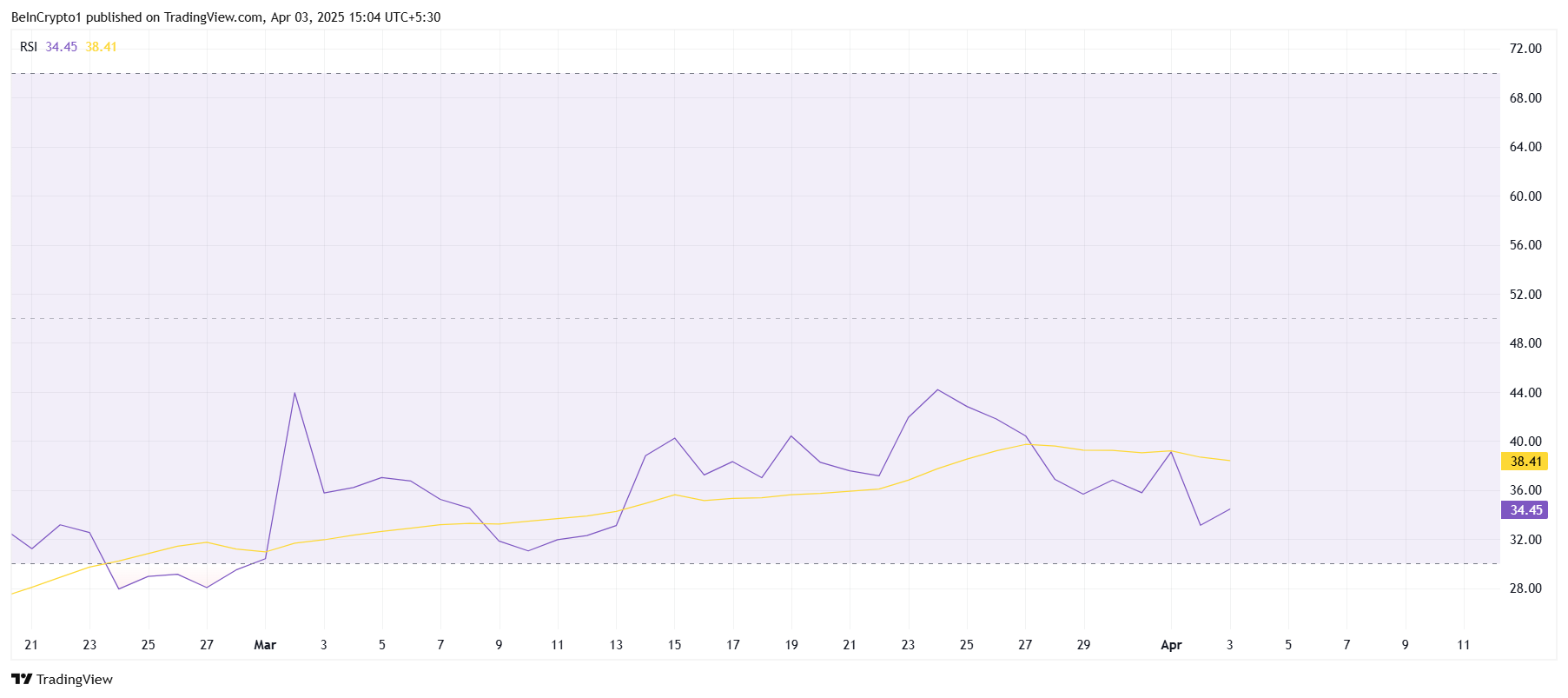 Xem xét động lực rộng hơn, các chỉ báo kỹ thuật như Relative Strength Index (RSI) cho thấy rằng TRUMP còn xa mới có thể phục hồi những tổn thất gần đây. RSI vẫn nằm vững trong vùng tiêu cực, dưới mức trung lập 50.0. Không có dấu hiệu đảo chiều hay động lực tăng giá, token có khả năng tiếp tục đối mặt với sự suy giảm trong ngắn hạn.