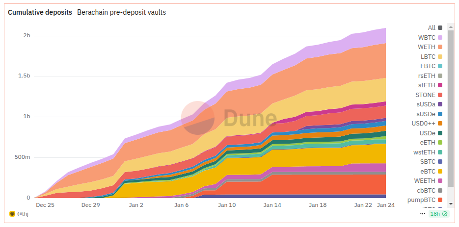 Theo dữ liệu từ Boyco và Dune, Boyco đã thu hút hơn 2.2 tỷ USD vào các vaults pre-pre-deposit, với 150,000 người tham gia, cho thấy sự quan tâm lớn của cộng đồng đối với Berachain và các dApps trong hệ sinh thái. Điều này đảm bảo rằng khi mainnet ra mắt, các dApps sẽ có đủ thanh khoản để hoạt động hiệu quả.