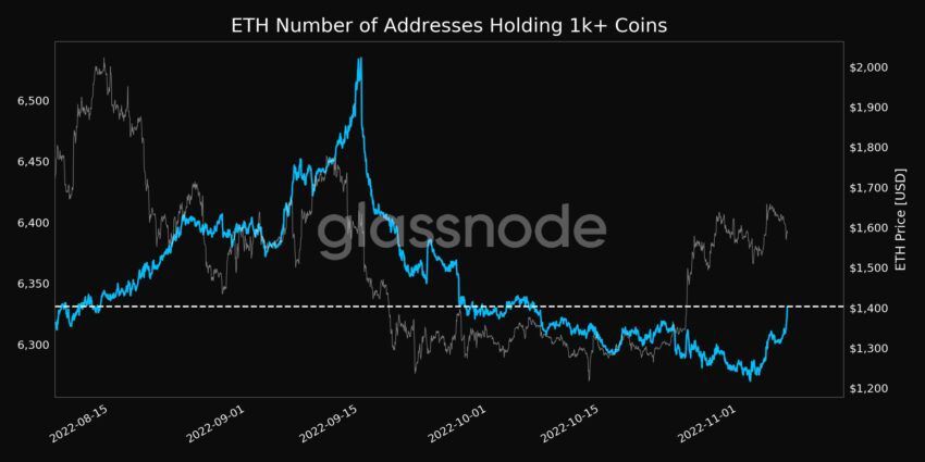Tuy nhiên, việc cá voi tích luỹ và nắm giữ hơn 1,000 ETH vẫn tiếp tục diễn ra trên thị trường. Đáng chú ý, số lượng địa chỉ của Ethereum nắm giữ hơn 1,000 ETH đã đạt mức cao nhất trong một tháng là 6,331 ví. Câu hỏi đặt ra là liệu việc cá voi tích lũy có đủ để giữ cho xu hướng tăng tiếp tục trong tương lai?