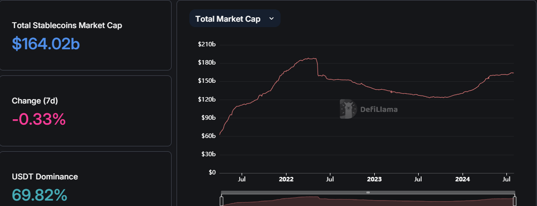 Dữ liệu từ DefiLlama cho thấy stablecoin là một lĩnh vực đang phát triển trong thị trường tiền điện tử, với tổng vốn hóa thị trường là 164.02 tỷ USD. Trong bối cảnh tăng trưởng nhanh chóng này, những lo ngại xuất hiện khi chúng vẫn là một lĩnh vực ít được quy định.