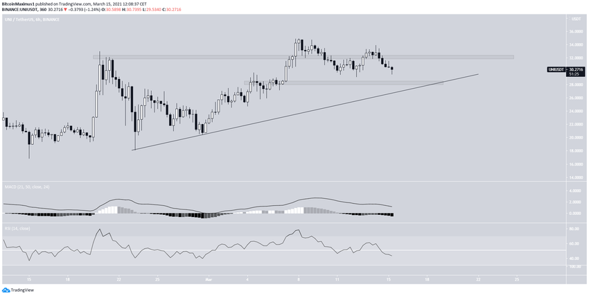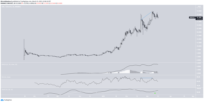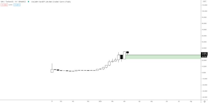Xuyên suốt năm 2021, UNI liên tục tăng trưởng. Ngày 8 tháng 3 vừa qua, nó chính thức ghi nhận mức giá ATH mới là 34.92 USD.