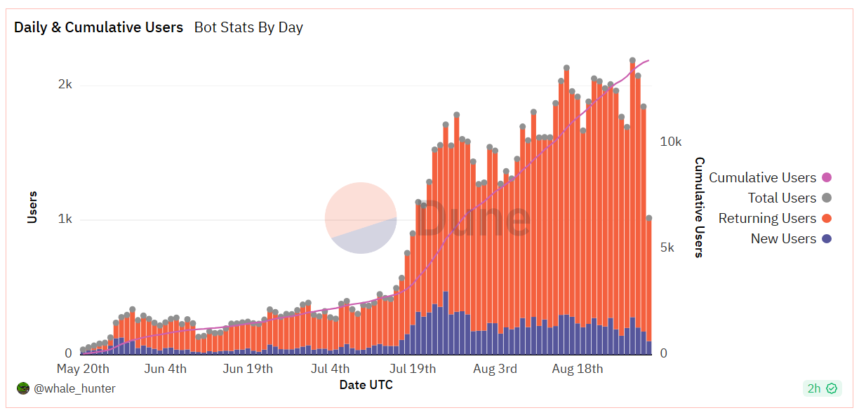 Như những dự báo đã được BeInCrypto phân tích từ những ngày đầu tháng 8, Unibot tiếp tục thu hút được người dùng mới và giữ chân được phần lớn người dùng tham gia.