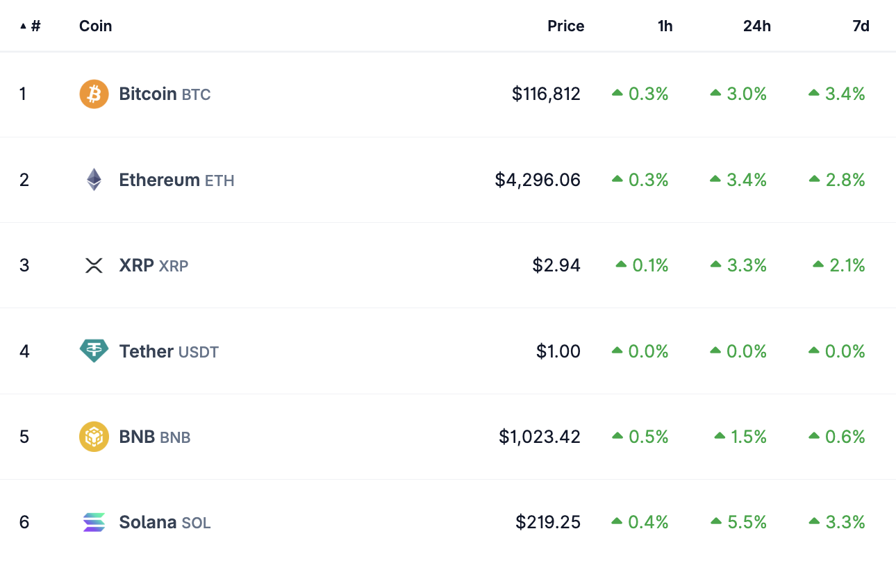 Ví dụ, mặc dù cổ phiếu TradFi giảm, nhưng lĩnh vực tiền điện tử lại có xu hướng tăng, khi các token hàng đầu và tổng vốn hóa thị trường đều tăng mạnh: