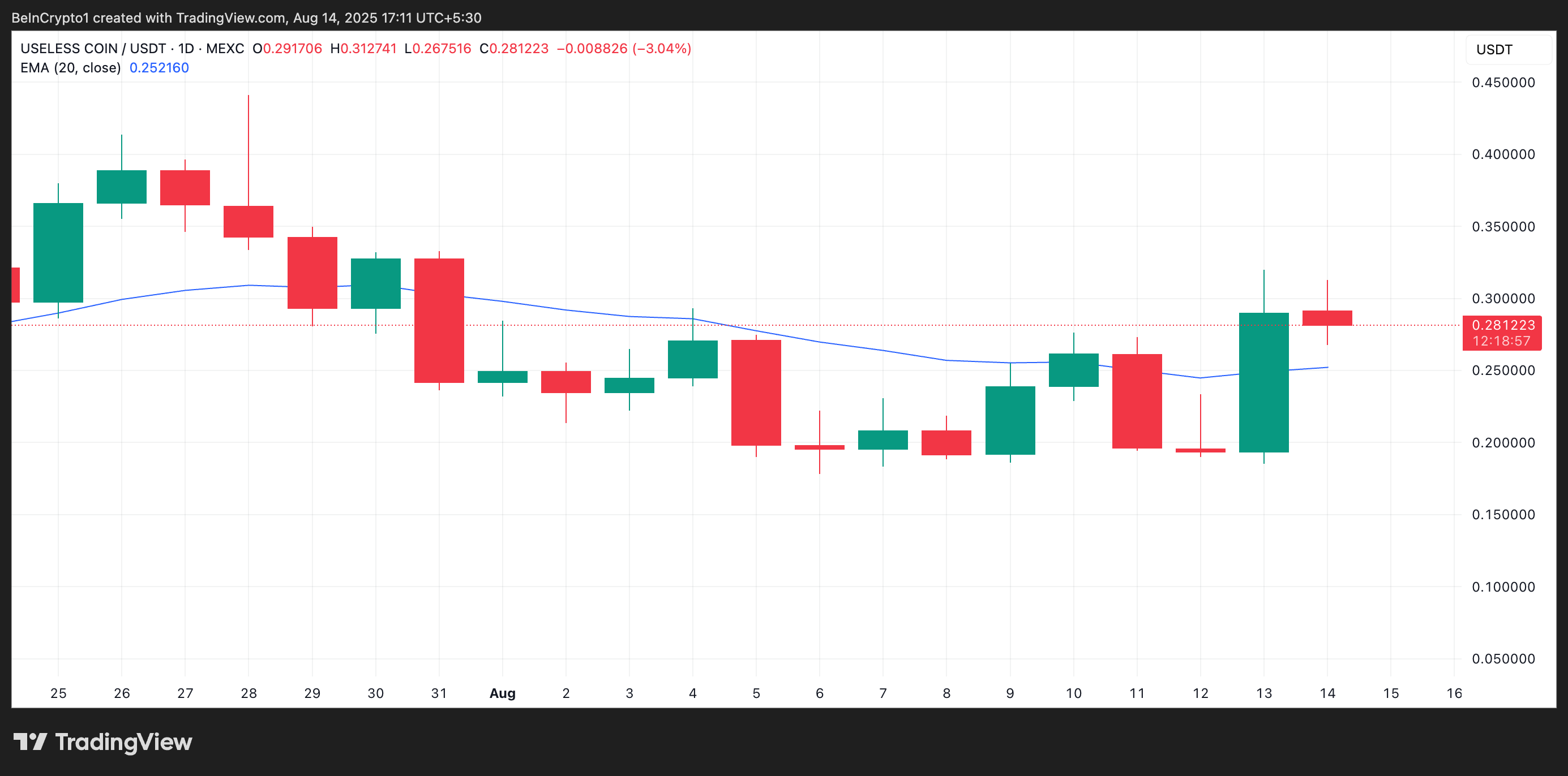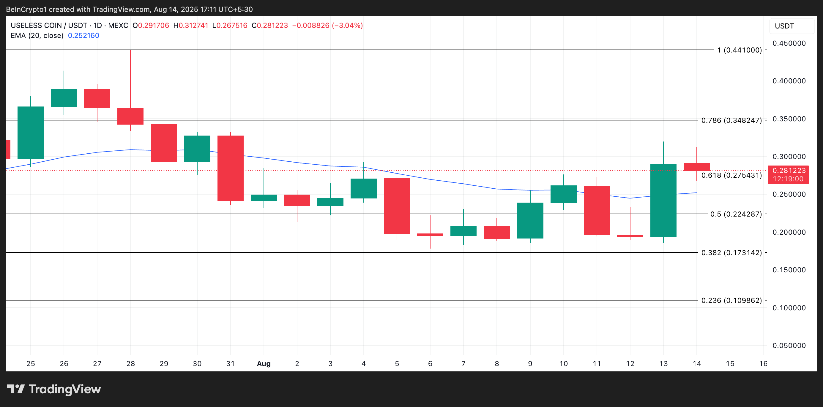 Tuy nhiên, nếu việc chốt lời diễn ra, token có thể giảm xuống dưới 0.27 USD và tìm cách thiết lập hỗ trợ tại đường EMA 20 ngày của nó. Nếu không giữ được mức này, USELESS có thể giảm sâu hơn về mức 0.22 USD.